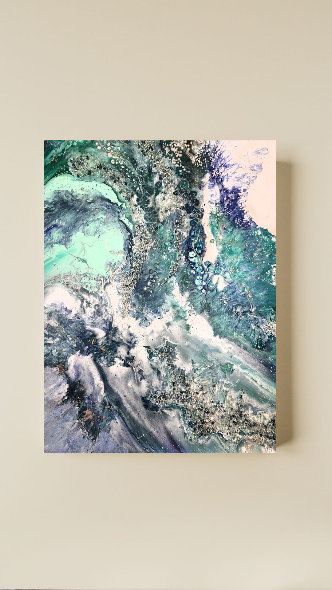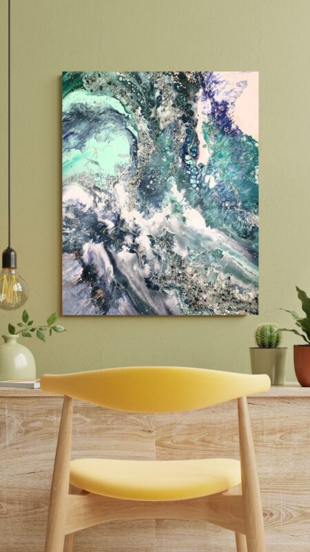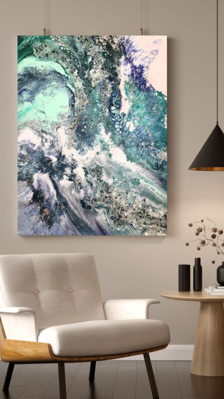 Please note the actual dimensions of the original painting are not to scale in the room mockups.
