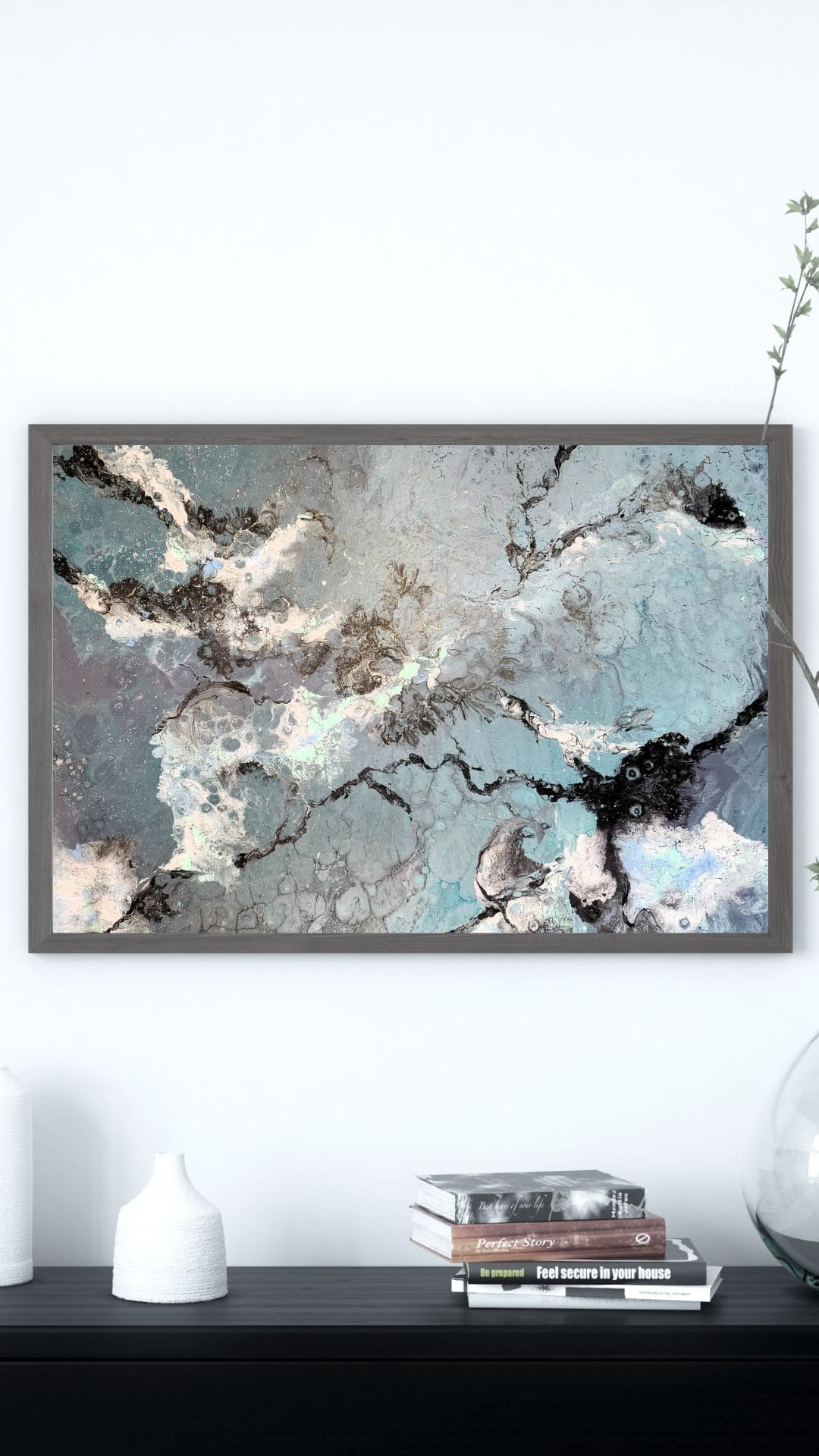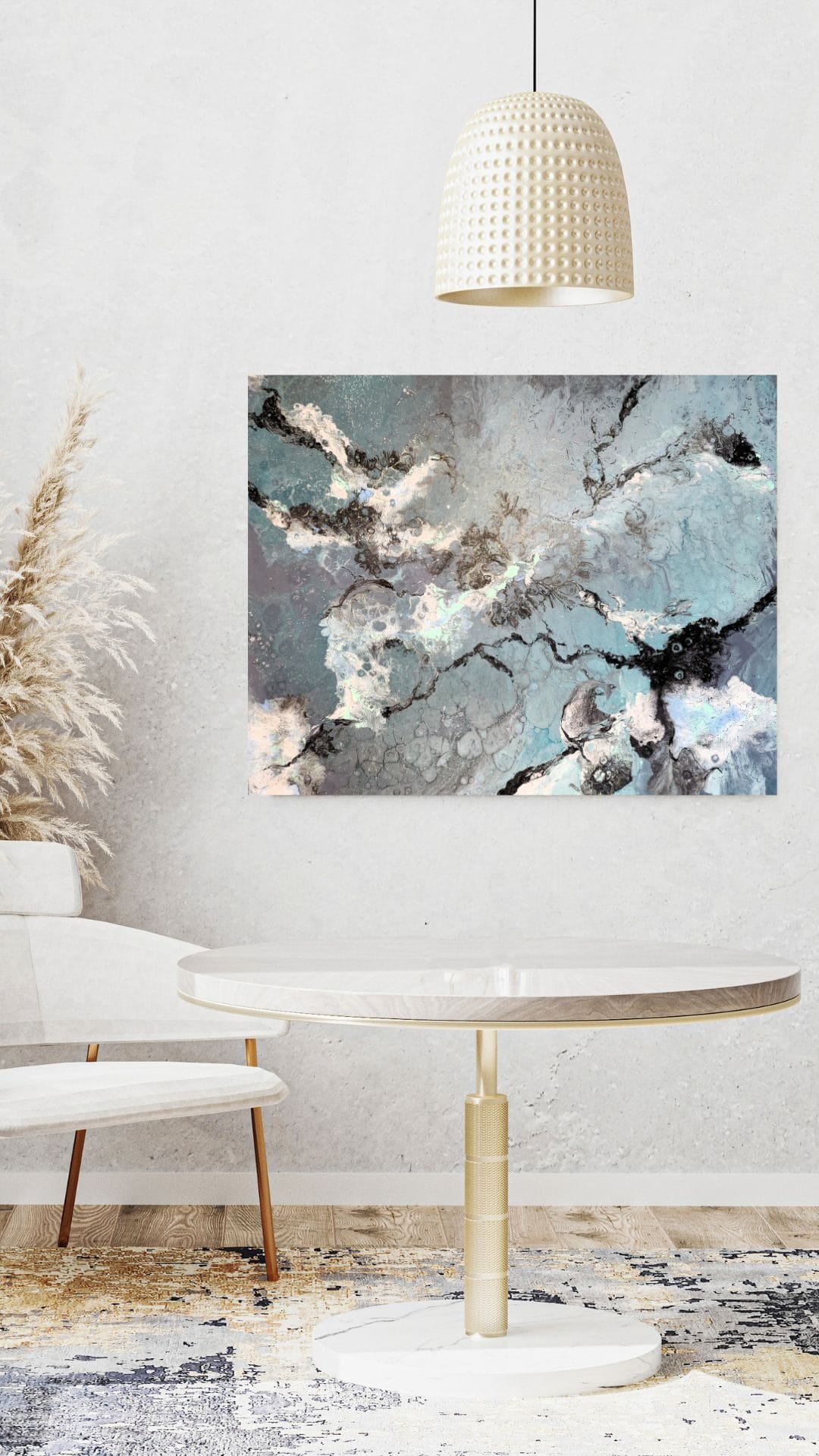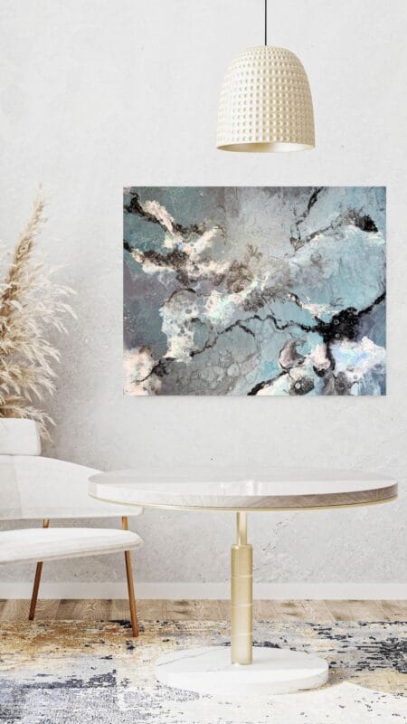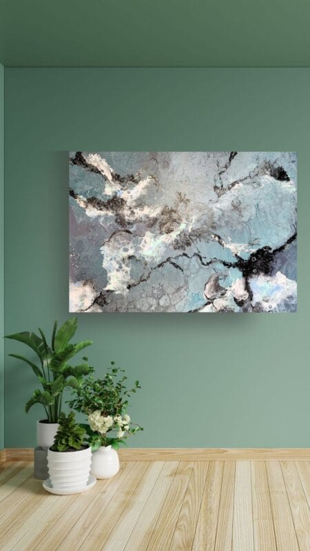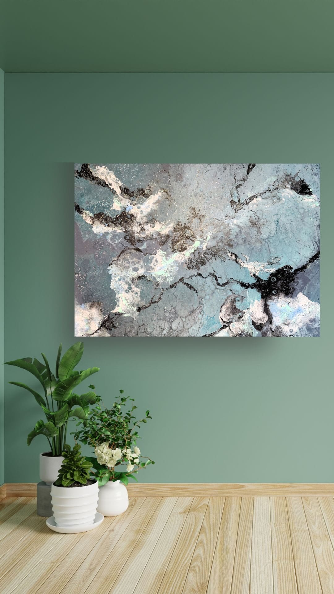 Please note the actual dimensions of the original painting are not to scale in the room mockups.